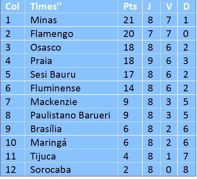 O Brasília recebeu na noite desta segunda-feira (1/12) em sua quadra Sesi Taquatinga Norte, o estreante Sorocaba no fechamento da oitava rodada da Superliga Feminina de Vôlei. No primeiro set o Brasília fez 25 a 19 no placar muito mais pelos erros do time visitante, bastante nervoso no jogo o que fez o técnico Clóvis Granado pedir dois tempos quase que seguidos.O ponto final do set foi de saque. No segundo set o Brasília abriu 6 a 0 com dois pontos de saque de Sara. No total foram quatro pontos de saques no set que teve a duração de apenas 20 minutos. Karen fechou o placar da parcial em favor do Brasília por 25 a 11. Gabi Carneiro fez o primeiro ponto do Brasília no terceiro set e seu décimo segundo na partida. Pela primeira vez na partida o Sorocaba abriu vantagem no placar fazendo 5 a 2. Pamela e Paquiardi, que vieram do banco, mesmo lesionadas, deram nova motivação ao Sorocaba que quase venceu a parcial, mas num erro de ataque deixou que o Brasília fechar a parcial em 25 a 23 e o jogo em 3 a 0. Gabi Carneiro (Brasília) foi a vencedora do Troféu Viva Vôlei e também a maior pontuadora do jogo com 16 pontos. Com a vitória, o Brasília pulou da vice lanterna para a nona colocação. Já o Sorocaba continua sem vencer na competição na última posição da tabela de pontuação.